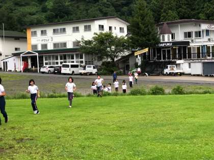 おはようございます。小雨が、ときより降っています。こどもたちは、朝から元気いっぱいです。今日は、昼から雨の予報です。そのため予定を少し変更しようと考えています。登山、カレーづくり、室内班対抗ゲームなどを行います。楽しみです。