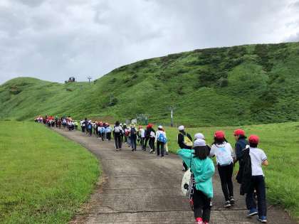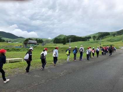 たかまる山に向かってスタート!全員で登りきるぞ!オー!