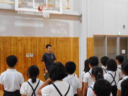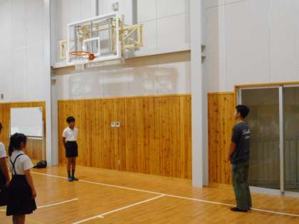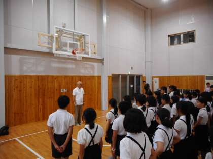 あいにくの雨のため、急遽予定を変更して、サンダイフクさんの体育館での開舎式となりました。