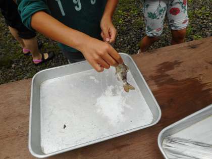 「魚つかみ」で捕まえた魚は、捕まえた子たちから順番に