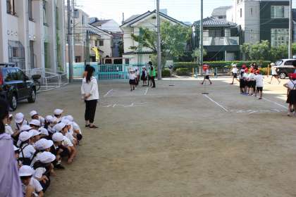続いては、実際に子どもたちが模擬道路を歩いているところです☆