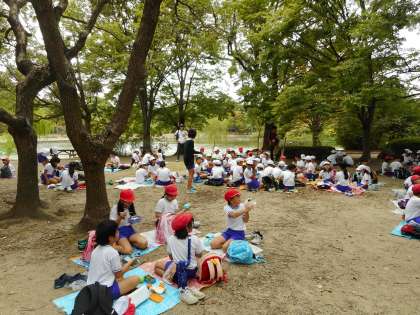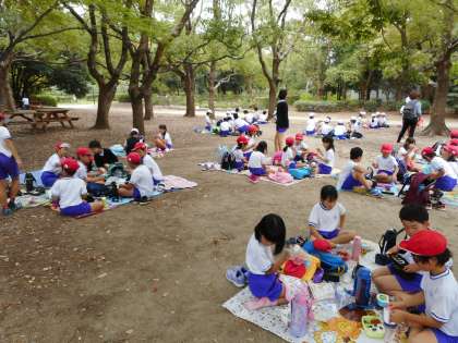 お友だちと一緒に緑の下で食べるお弁当はいつも以上においしく感じますね☆