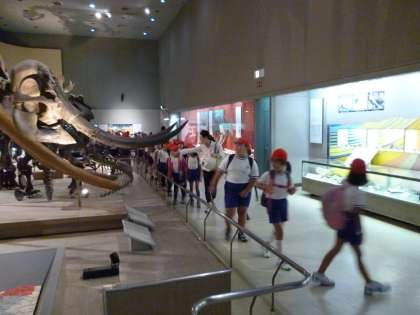 長居公園では、たてわり班でのオリエンテーリングと自然史博物館の見学をしました。