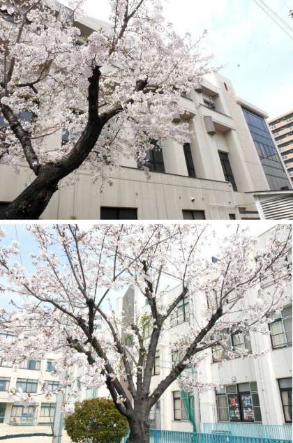 春まっさかりの季節です。校庭の桜の花がいっせいに咲いています。