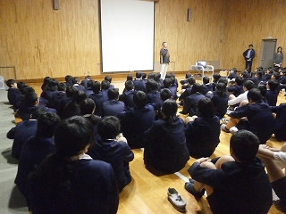11月18日(火)に6年生が桜宮中学校へ行きました。中学校生活について中学校の先生や生徒会の人たちから話を聞いたり、授業やクラブ活動の見学をしたりしました。