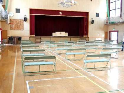 ↓ 写真は、入学オリエンテーション会場の講堂です。