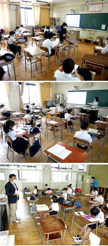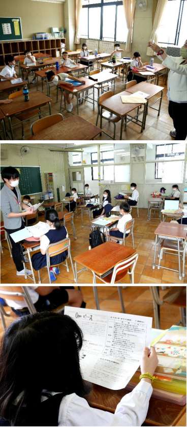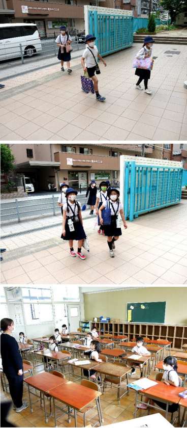 2年・4年・6年生の初めての登校です。4年と6年は2分割で、2年生は3分割で登校しました。校長先生も各教室を回って自己紹介をしてお話しました。