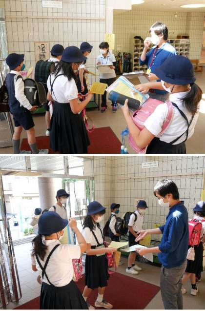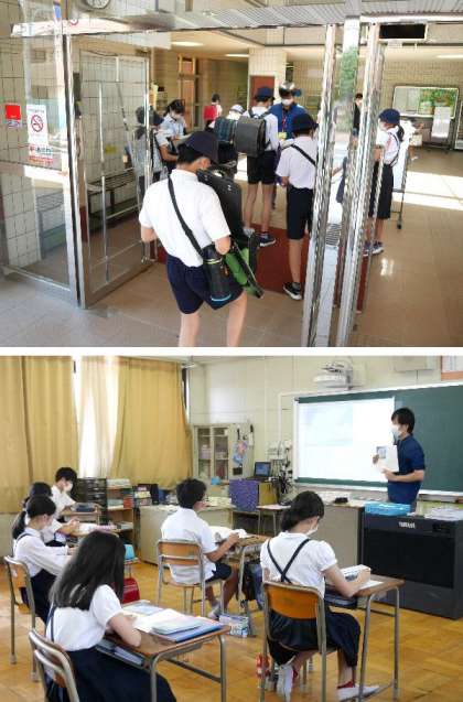 6年生が登校すると、担任まの先生が健康観察表をもとに体調を確認します。教室ではは、国語の教科書の最初にある詩「いのち」を学習しました。言葉の力をかんじながら朗読を聞き取ります。