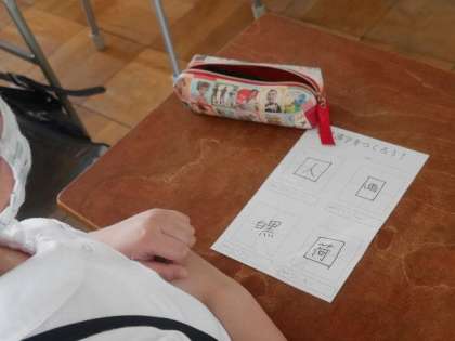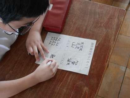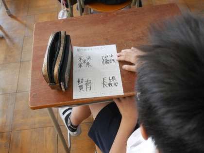5年生では、学習してきた漢字の部首を使って、新しい漢字をつくっていました。みんないろいろと知恵をだして考えています。