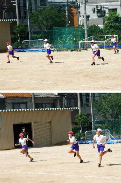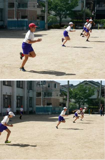 6年生の体育の授業です。どんなスポーツでも基本は走ることでしょうか。しっかりと身体を動かしています。