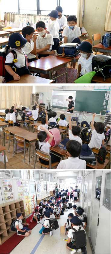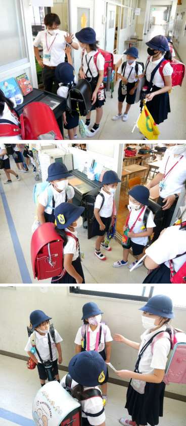 5時限目に、各教室に分団ごとに1〜6年生が分かれて集まりました。1年生の教室まで6年生のリーダーが迎えにきてくれました。明日から分団により、集団登校が始まります。各分団で団長を決めたり、集合場所の確認をしました。