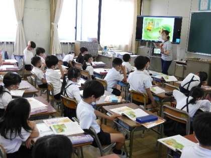 2年生の道徳では、「ぽんたとかんた」でよいこととわるいことについて考えてみました。