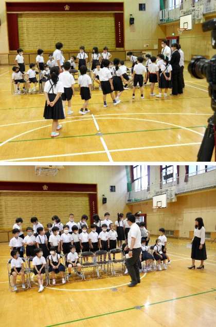 今日は全学級の学級写真を撮りました。もう暑い時期なので、ポロシャツ姿での撮影です。姿勢をただして、笑顔で写ります。