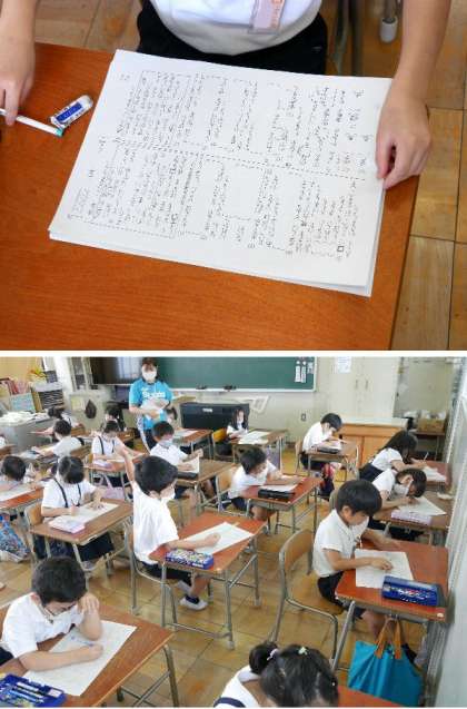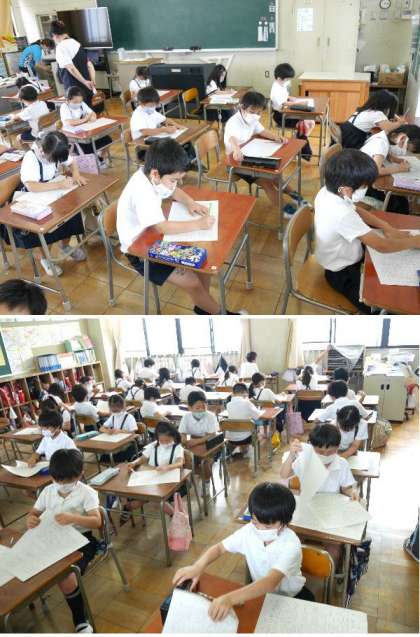 2年生では、国語のテストが行われていました。子どもたちは集中して取り組んでいます。