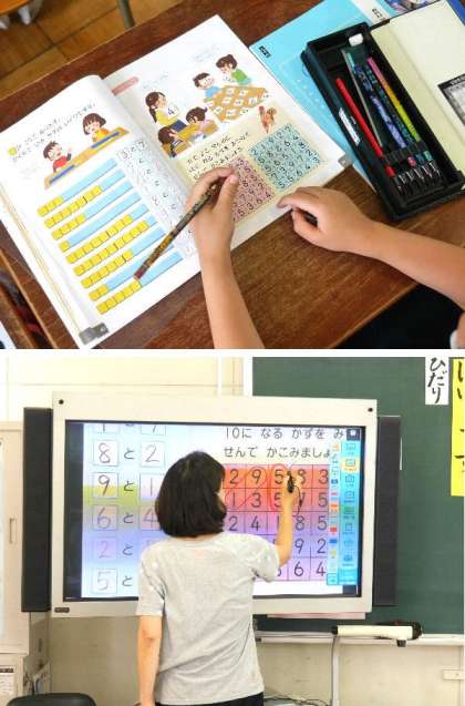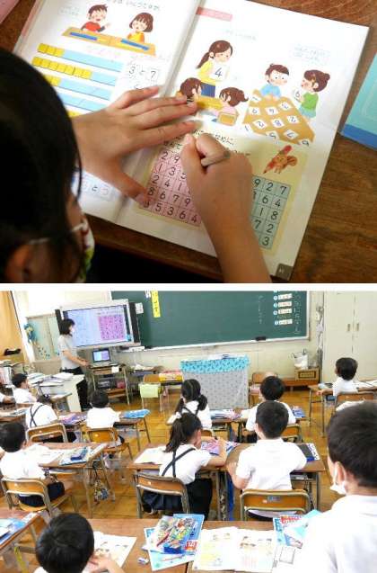 1年生の算数です。たて、よこ、ななめに、10になる数をみつけて線でかこみます。すぐに見つけられるかな。たし算の練習になっています。