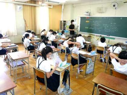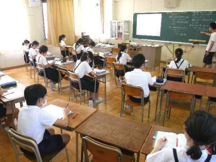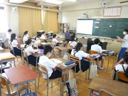 6年生の算数では、わからない数を文字にして答えを求める学習をしています。6年生を3分割にして、少人数でのわかりやすい授業をしています。