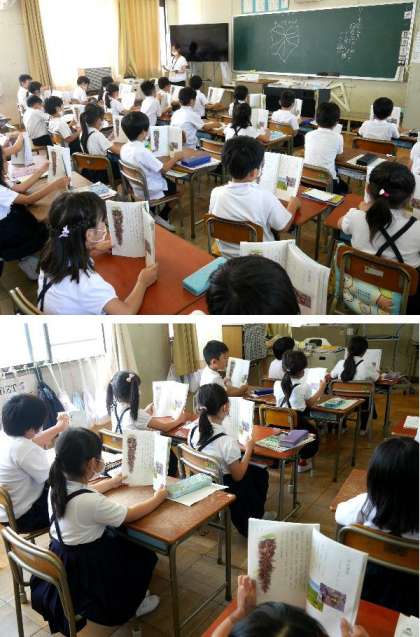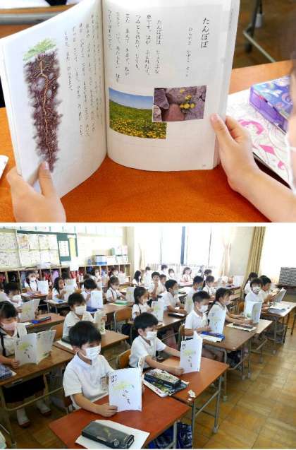 2年生が国語の教科書の「たんぽぽ」を読んでいます。