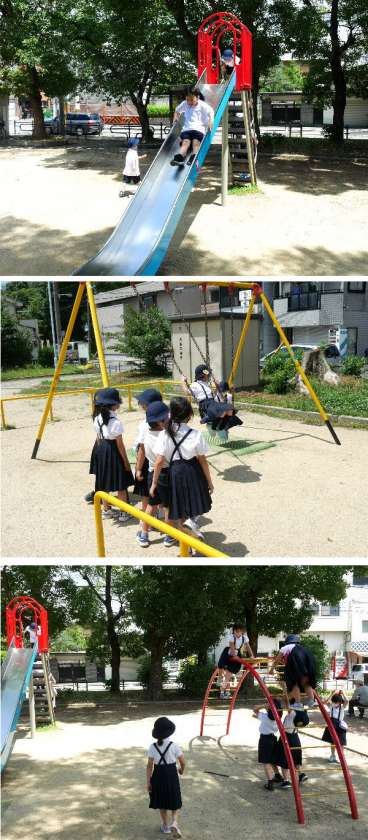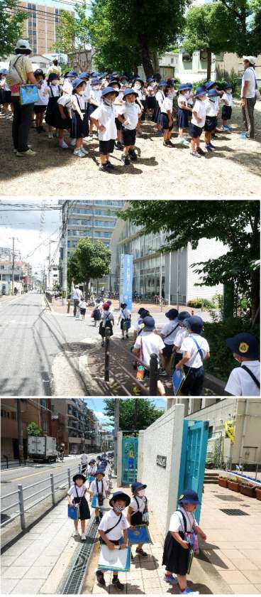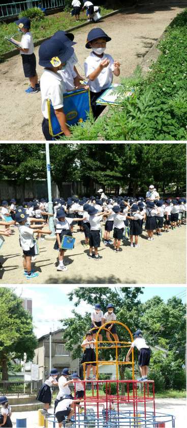 1年生は、2限目と3限目に、都島公園まで探検学習に出かけました。公園での調べ学習のあとに、少しだけ公園で遊びました。たのしかったですね。今日はあまり暑くなかったので、気持ちのよい校外での学習になりました。