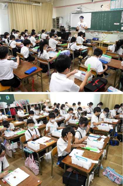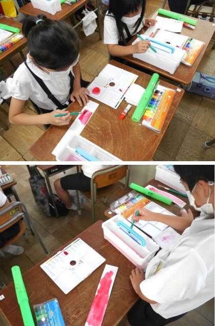 3年生では、先日にそろえた絵の具道具の使い方を練習しました。表現力の幅がひろがり、いろんな作品を作ってくれることを楽しみにしています。
