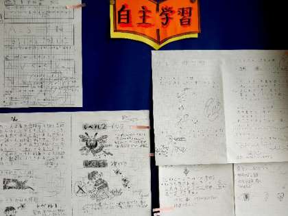 6年生の教室に、自主学習ノートのお手本が掲示されています。しっかり考えて、自分の学習に取り組んでいますね。