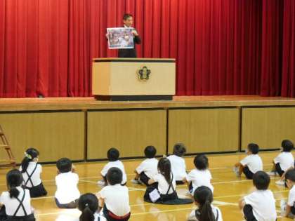 今日は、低学年の全校朝会を行いました。校長先生から、メジャーリーガーだったイチロー選手についてのお話をしました。野球を上手になるには、グローブなどの道具を大切にすることだということです。いつでも使える準備を怠らずに、感謝の気持ちをもつことが大切なのです。学校では鉛筆やけしゴムなどの学習道具を大切に扱ってほしいと思います。