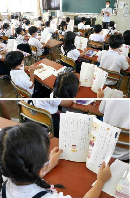 2年生が国語の教科書「こんなことしているよ」を音読しています。しっかり授業をがんばっています。