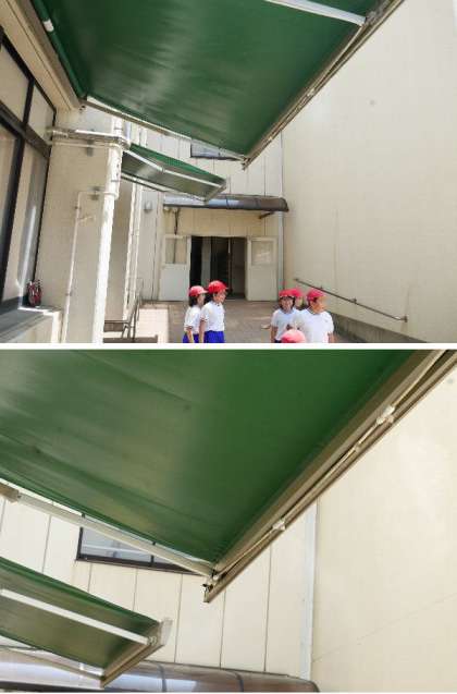 4年生ではみんなで楽しんでいました。校庭のひさしにミストがつきました。少しでも涼しくなればと思います。適度に休憩と水分補給をしながら、がんばっていました。
