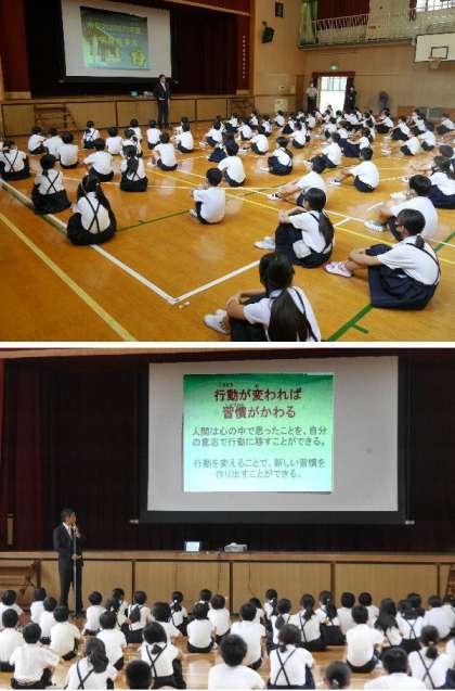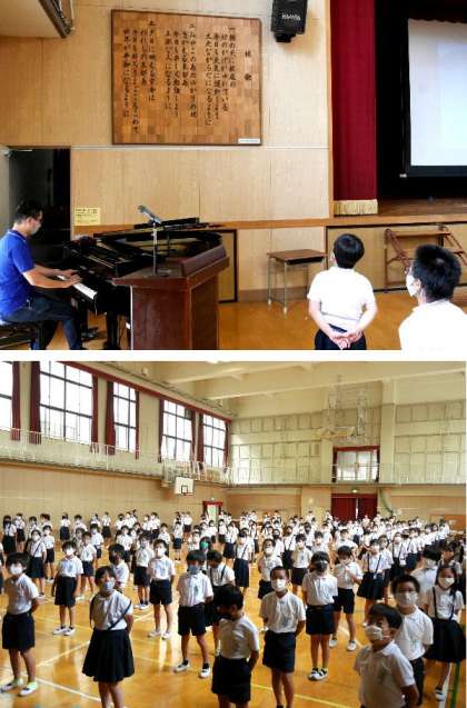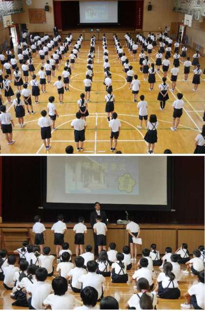 今日は1学期の終業式でした。高学年と低学年に分かれておこないました。