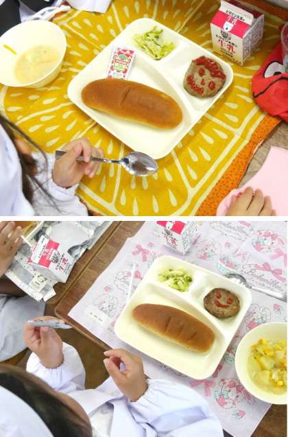 8/27 今日の給食は!ケチャップで顔かいちやった