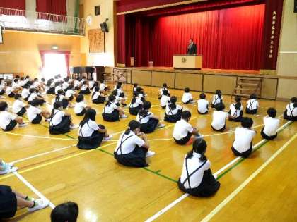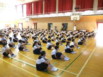 今日は高学年の全校朝会を講堂で行いました。校長先生から、3つの耳のお話をしました。あなたの耳は、鉄砲耳、ざる耳、財布耳のどれでしょうか。