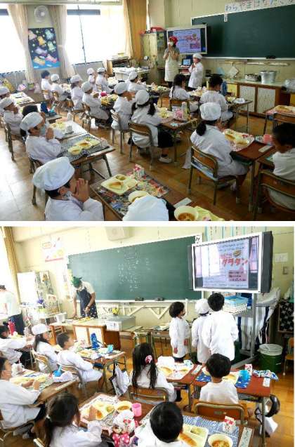 今日の献立は、豆乳マカロニグラタン(米粉)、トマトスープ、20世紀なし、おさつパン、牛乳でした。1年生も給食カレンダーの説明をしっかり読んで伝えることができるようになってきました。