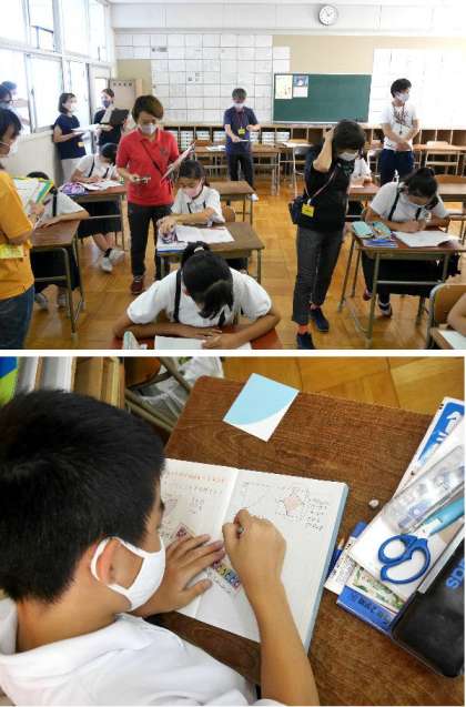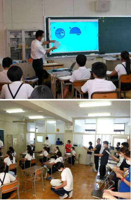 6年生の算数で校内研究授業が行われました。複雑な形の円の面積を求めます。どうやったら答えを出せるか、みとおしをたてて考えていました。いろいろな求め方があり、それぞれの考え方を考えることができました。