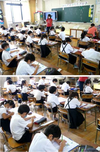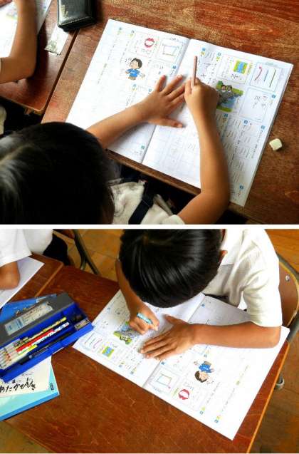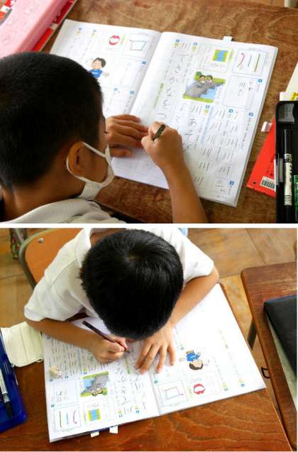 1年生では漢字の練習をしています。「川」「口」とか簡単なものから練習です。どんどん書ける言葉がふえていきますね。