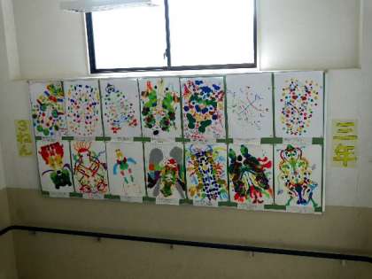 3年生の掲示板の作品が変わりました。すてきな絵がいっぱいです。