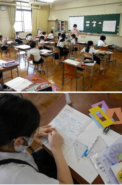 4年生の算数は、2学級を3分割にして、きめこまやかで、わかりやすい授業を行っています。また、子どもたちどうしでも、教えあったりしてがんばっています。
