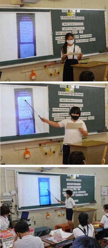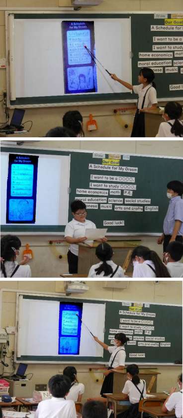 5年生の英語で、校内研究授業をおこないました。「A Schedule for My Dream.」ということで、将来なりたいもの、そして、そのため学校でどんな教科学習をしたいかを英語で発表しました。