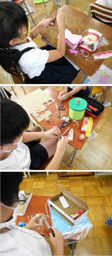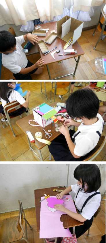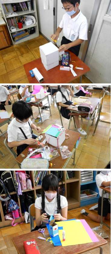 4年生が、段ボールでおもしろアイデアボックスが形になってきました。いろいろな工夫やデザインがあって楽しいですね。