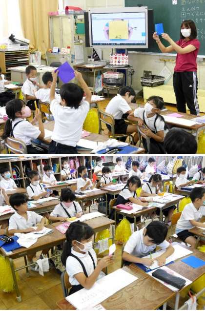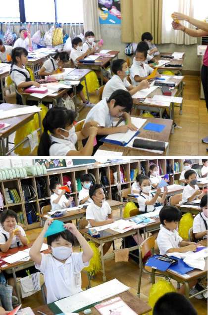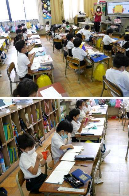 1年生の算数では、「どちらがながい」を学習しています。どうやって、ながさをくらべるかを考えます。折り紙のたてとよこはどちらが長いでしょうか。どうやったら比べられるかな。