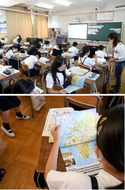 英語「Where do you want to go ?」との質問に答えるため、地図帳を出していきたいところを探しています。早くコロナが終息して、いろんなところに行けるようになってほしいですね。