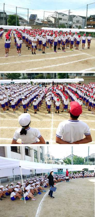 今日は、初めて全児童が運動場にそろっての全体練習をしました。開会や閉会式の整列や、座席の位置などを確認しました。今年は、入場行進や応援合戦などもないので簡素化しています。