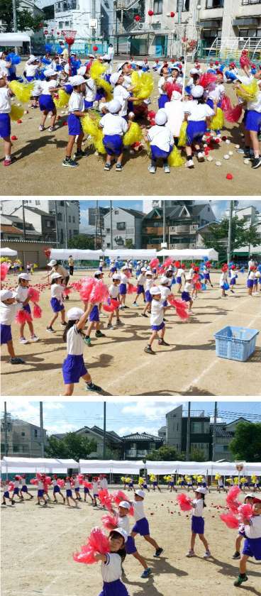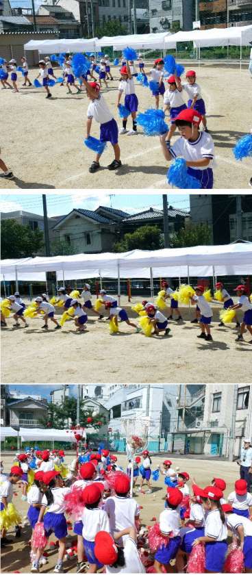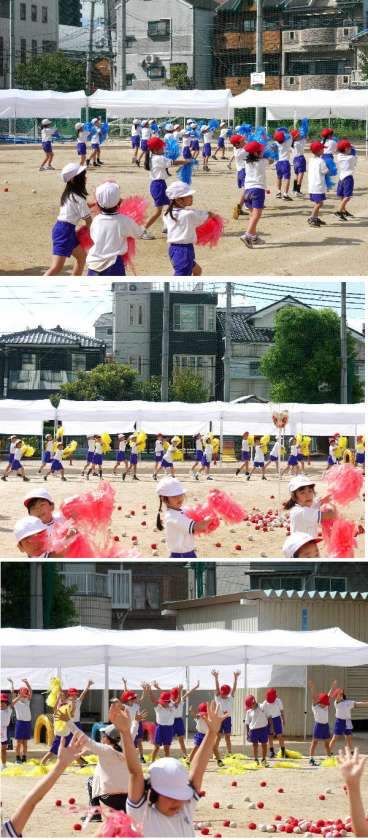 1年生の運動会の団体演技の練習も佳境です。ボンボンを手に一生懸命にがんばっています。元気いっぱいです。