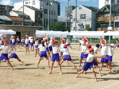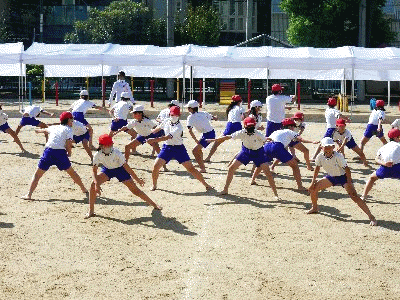 5年生は運動会でよさこいソーランを演技します。運動場での最終調整です。