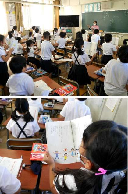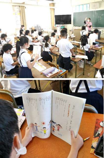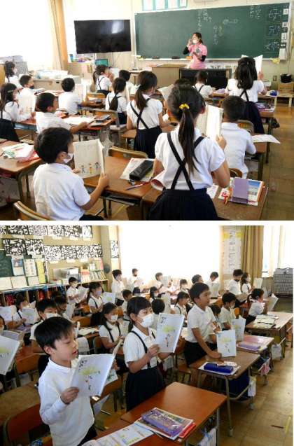 2年生の国語では、詩「空にぐうんと手をのばせ」を学習しています。みんなで詩を読んでみました。