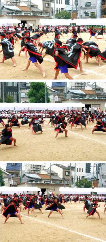 5年生の団体演技は「ひがみやソーラン」です。伝統のソーランを真剣に練習を積みかねてきた成果を披露いたします。