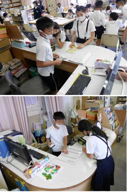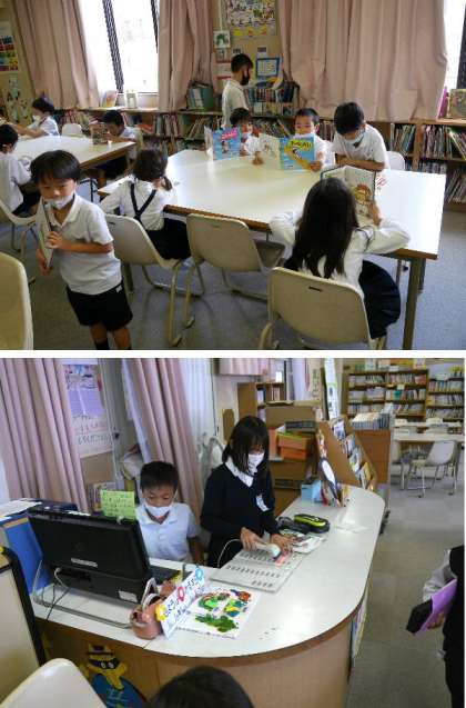 ずっと、休み時間の図書館開館はありませんでしたが、今日から開館します。図書委員も貸し出しに忙しく活動です。