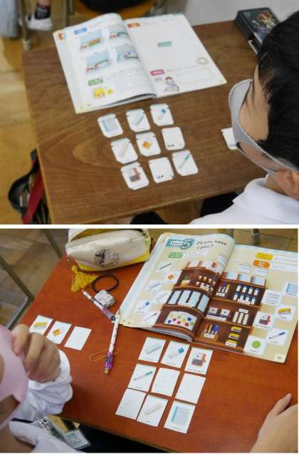 4年生が英単語でビンゴゲームを楽しみながら学習しています。とても盛り上がっていました。