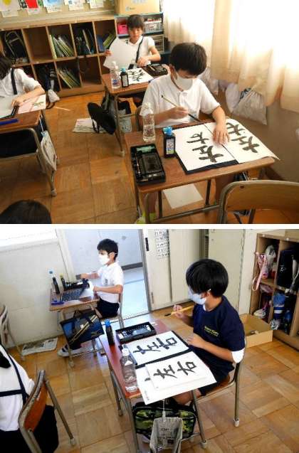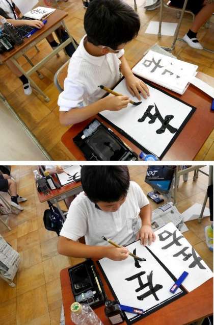 4年生の習字は「左右」です。書き順もちがうので注意して書いています。