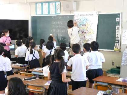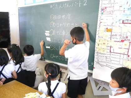 2年生が町たんけんについてのまとめをしています。