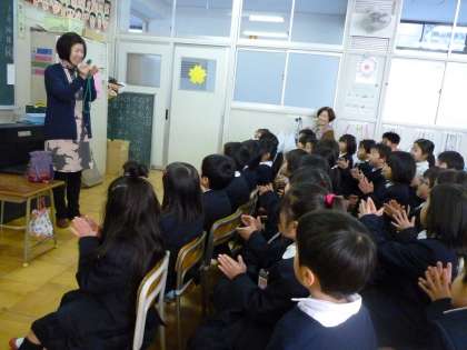 ・ロウソクの火をつけて、お話を聞きました。楽しいグリム童話の世界を想像することができました。
