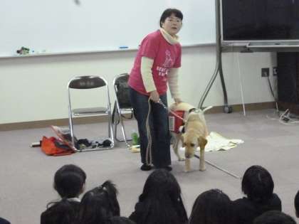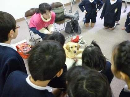 金曜日に盲導犬のユーザーさんをゲストティーチャーにお招きし、盲導犬についてのお話を聞きました。
